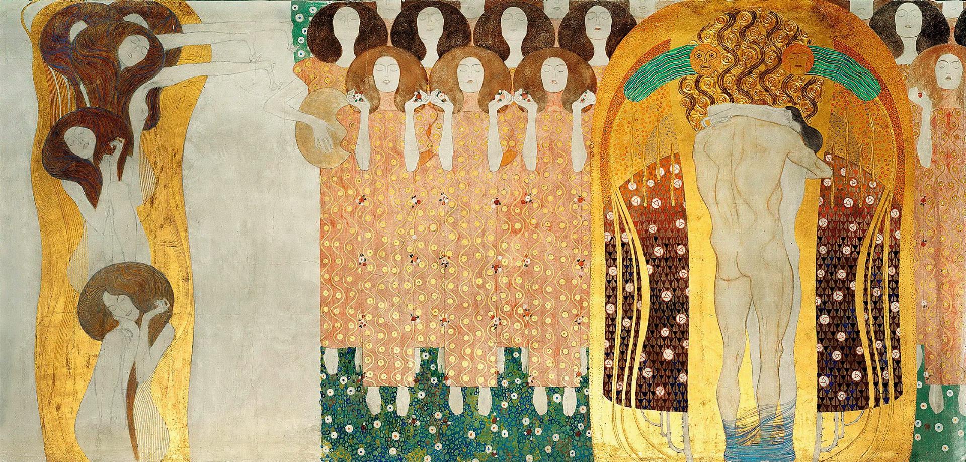 נמשיך לגלריית הזסציון, הבית של האמנות האלטרנטיבית שביטאה את היציאה מהאקדמיה. נתרשם ממבנה הגלריה הלבן בעל עיטורי הזהב בסגנון האר-נובו וניכנס אל הגלריה על מנת לראות את יצירתו של גוסטב קלימט, "האפריז של בטהובן". יצירה זו, מהמוקדמות של קלימט, מבקשת לבטא את הערכתו לגדולתה של הסימפוניה התשיעית של בטהובן ובעיקר לפרק הכוראל החותם אותה.