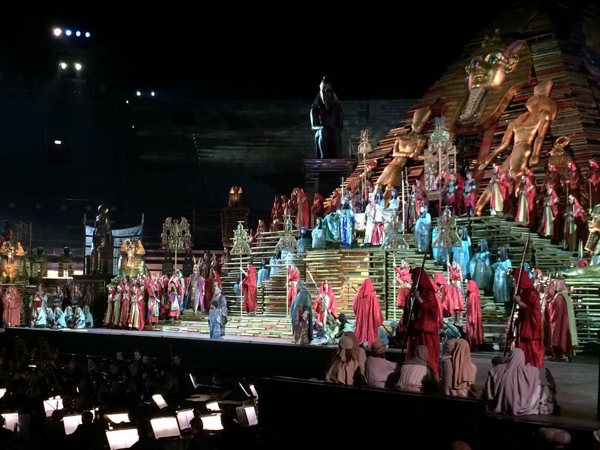 לקראת ערב נצא אל מרכז העיר ורונה, לארוחת ערב משותפת, ואחריה נצפה ביצירת הדגל של פסטיבל הארנה, האופרה "אאידה", מפסגות יצירתו של ורדי. סיפור אהבתם הבלתי אפשרי של אאידה, הנסיכה האתיופית, ורדמס, המצביא המצרי נפתח בקריאה עוצמתית למלחמה ומסתיים בתפילה חרישית לשלום. הפקת ענק מרהיבה ביופיה, בבימויו של פרנקו זפירלי ובהשתתפות מאות זמרים, ניצבים ורקדנים.